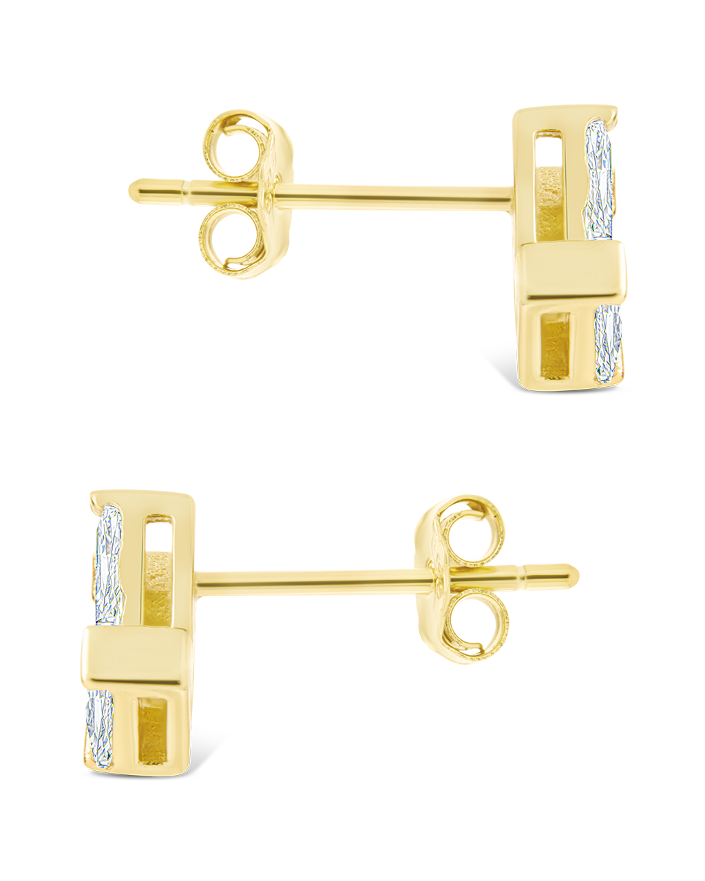 This one plays with angles.The Macy Studs layer baguette-cut hearts and arrows stones into a sculptural trio. Sterling silver keeps the setting clean, while the angled cuts give a little extra lift.