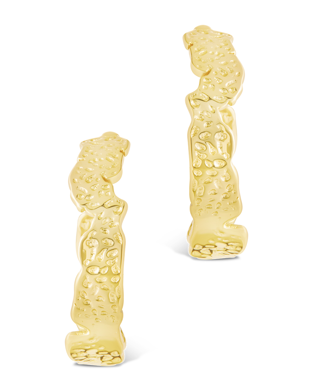 Organic texture, sculptural silhouette. These molten-inspired hoops are bold in detail but small in scale—perfect for stacking with polished studs or pairing with a crisp white tee.