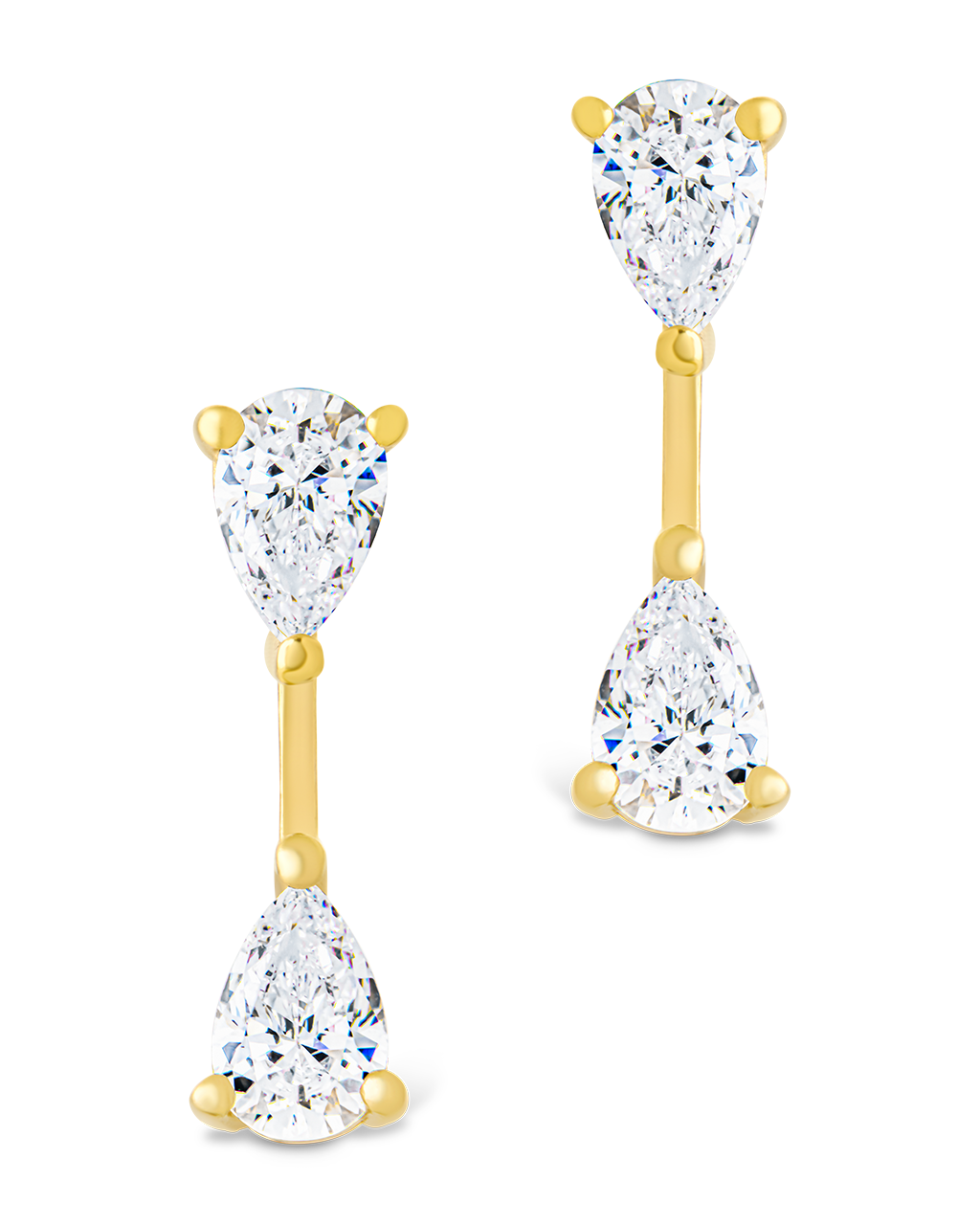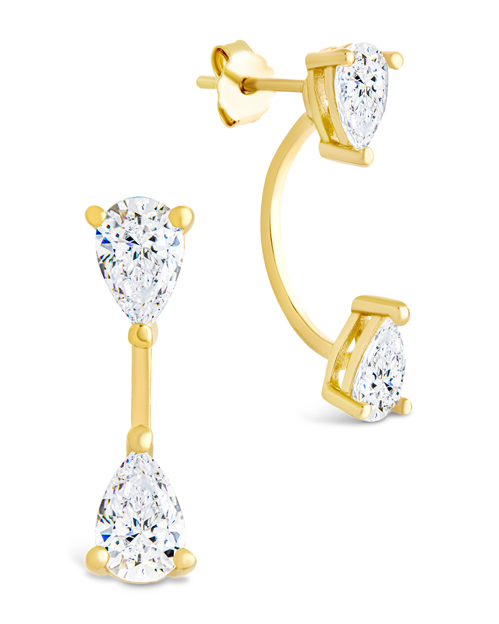 The Sterling Silver Pear Cut Duo Jackets are a bold way to wear stud earrings. Made with pear-cut Hearts & Arrows CZs, these jackets slip behind your earlobe, with the pear-shaped stones dangling just below for a dimensional look.