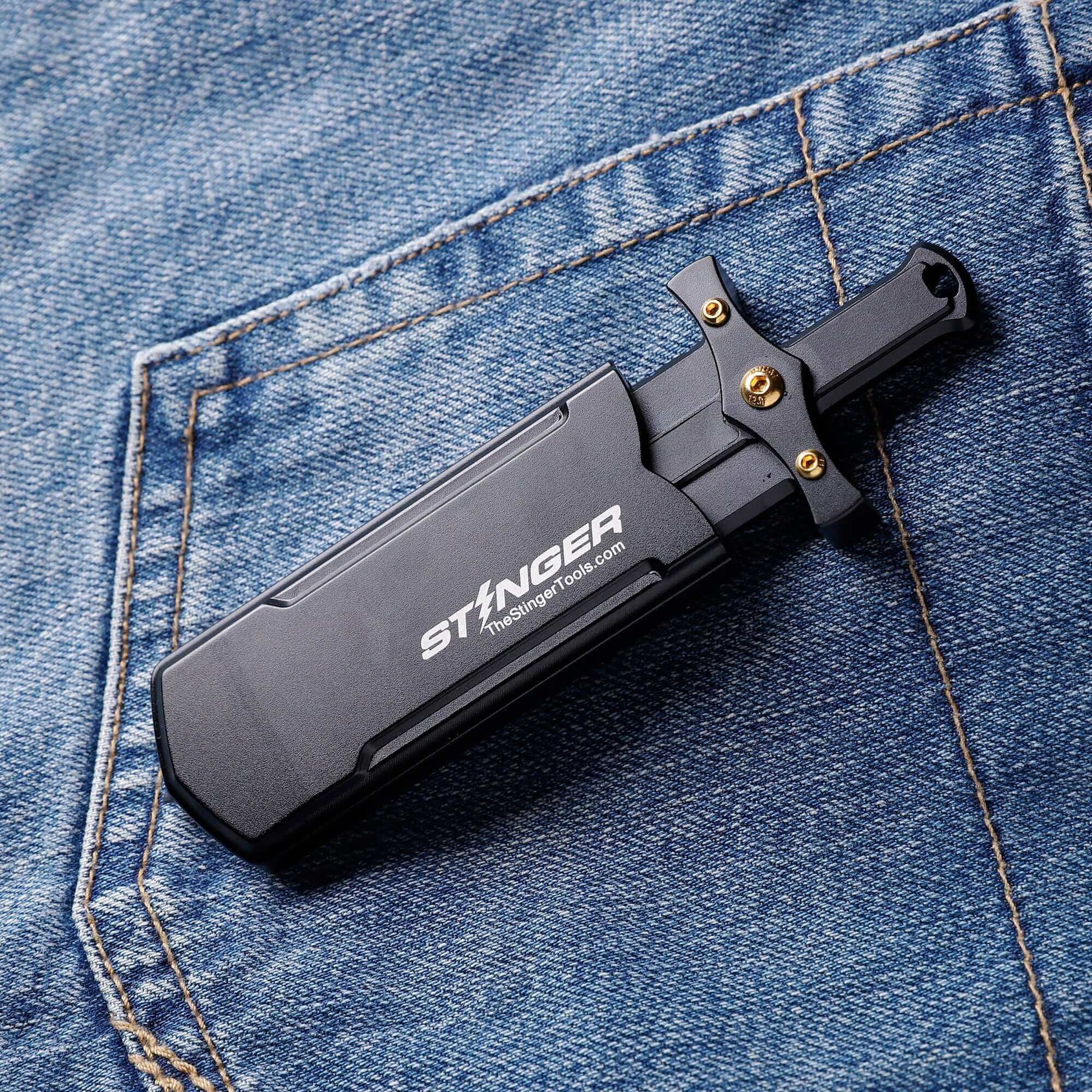 This design is truly legendary and unparalleled. Taking inspiration from Final Fantasy's iconic Buster Sword, Stinger Tools has created the Buster Blade, currently under pending patents. Combining the functionality of a utility knife with emergency escape tools, its unique serrated edges and tungsten glass breaker make it a cool everyday carry gadget. The scabbard can serve as a grip extension, enhancing leverage and comfort during use.