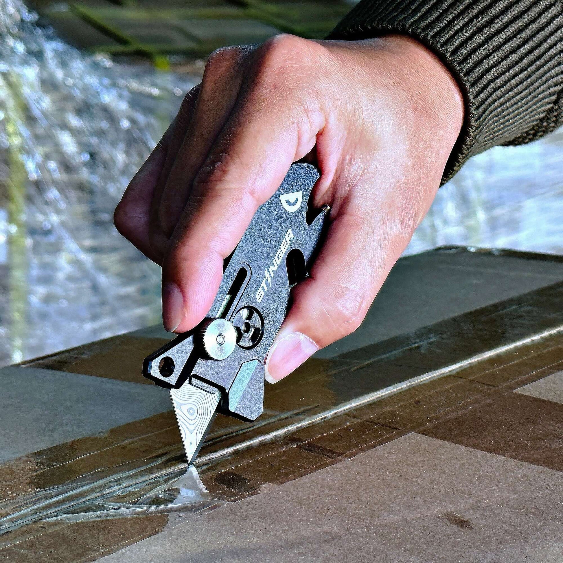 The full opened length is only 3.95 inches and when closed, it stands at less than 3.45 inches in length and less than 1.0 inches in thickness. The miniature size of the box cutter means it can easily be hidden in any coin pocket, or wallet, or attached to a set of keys. Weight: The ultralight weight of the Stinger Mad Bomb EDC Blade is 1.835 oz.