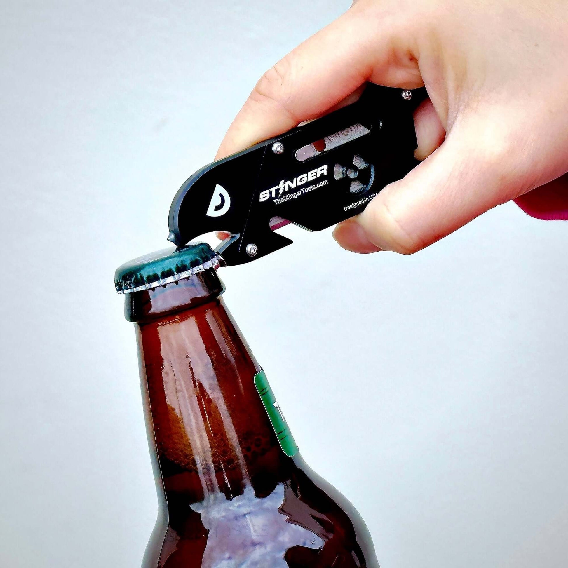 We've made use of extra material space by adding a bottle opener and a tungsten Glass Breaker. The bottle opener has been tested thoroughly (and responsibly) and the glass breaker is perfect for emergency escape situations.