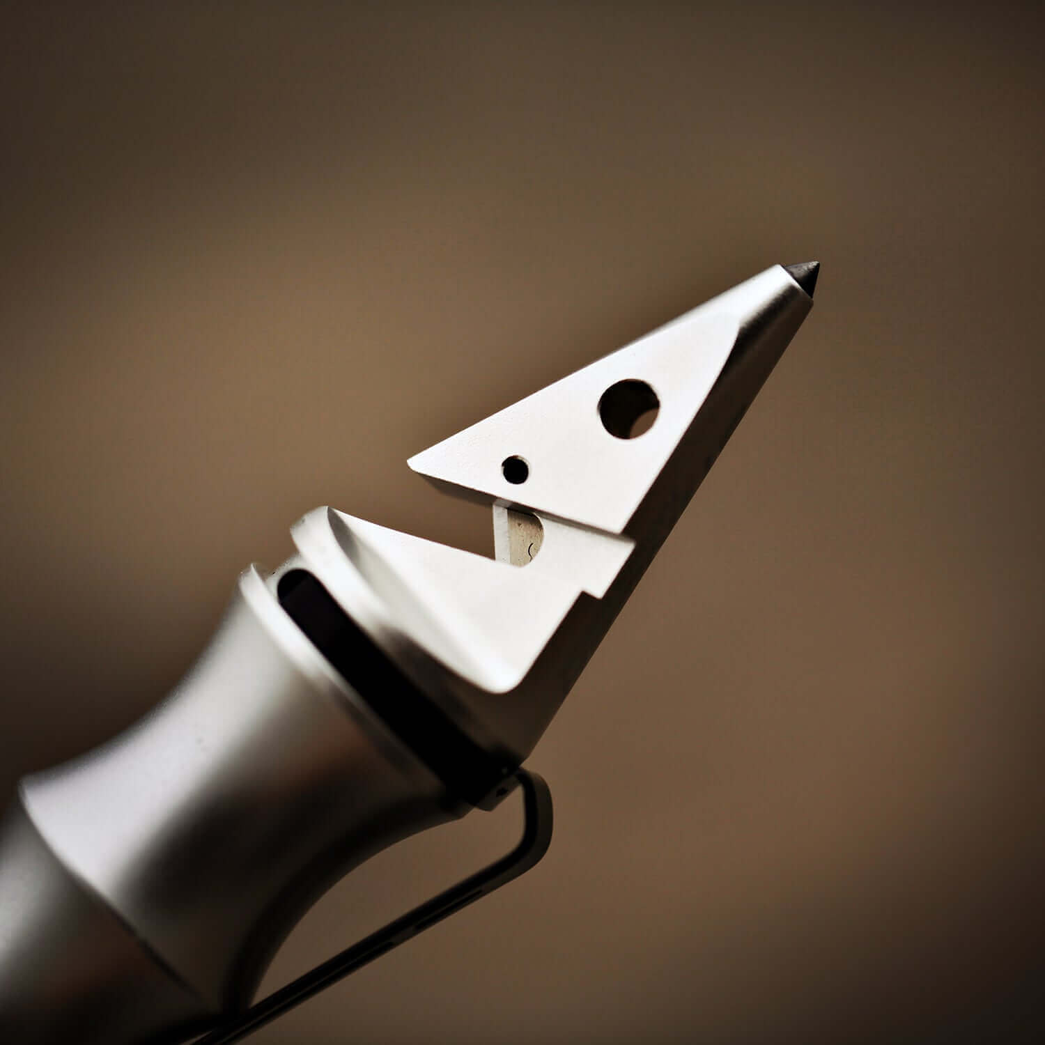 - CNC-crafted ergonomic grip made of aluminum alloy.