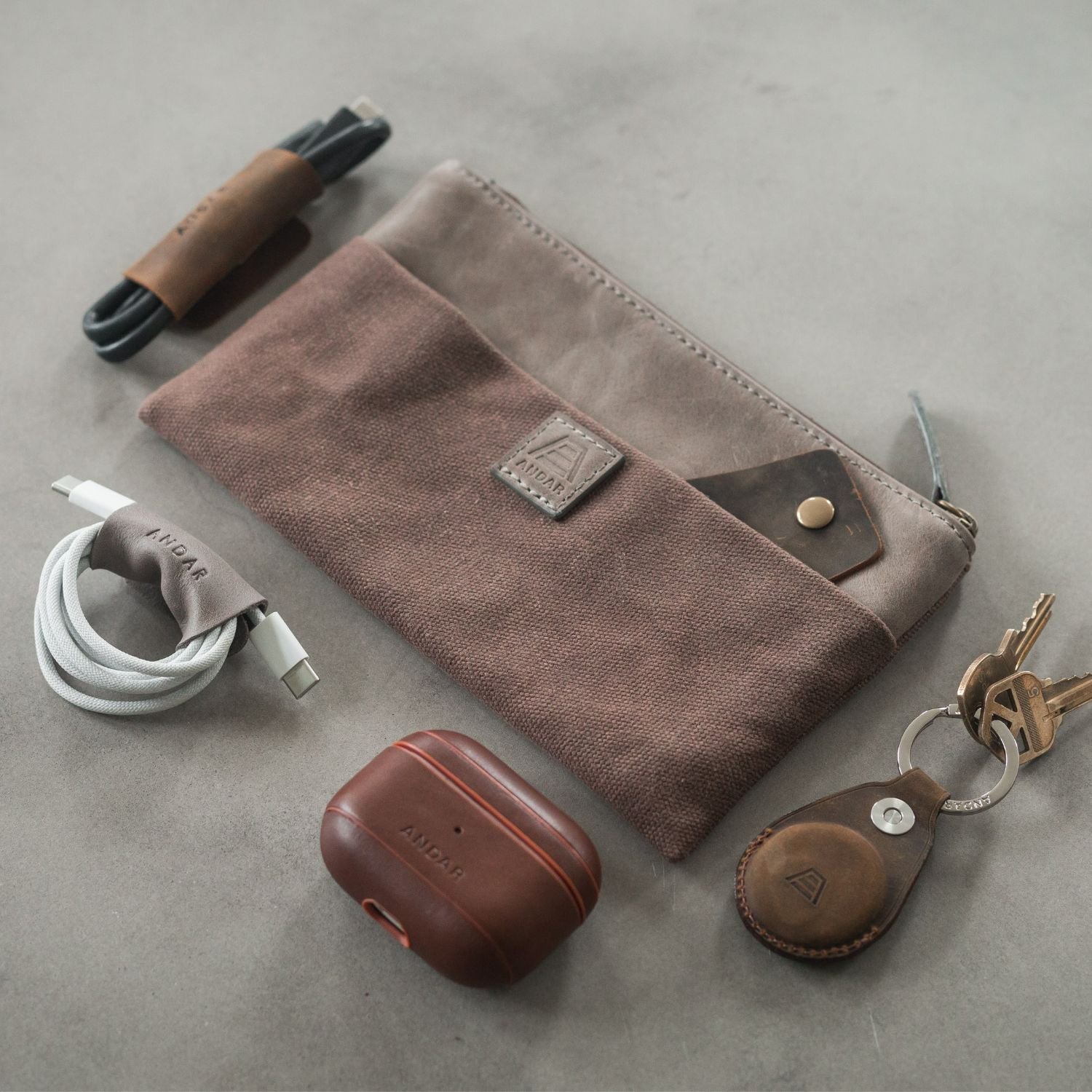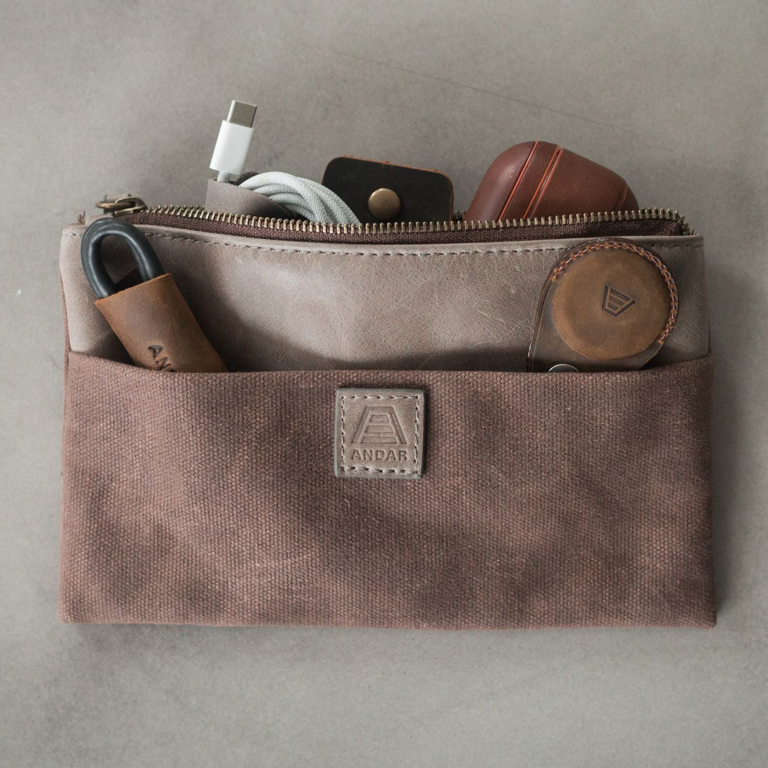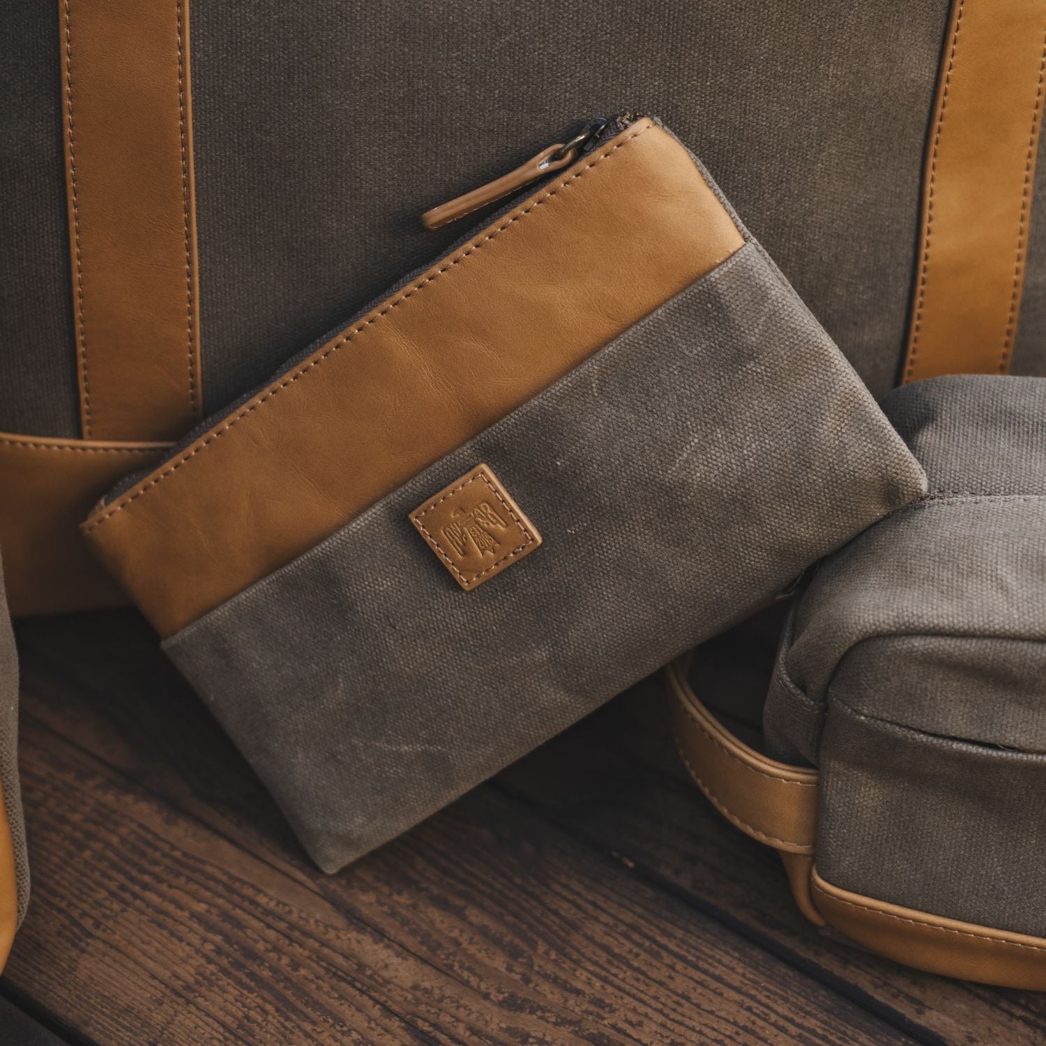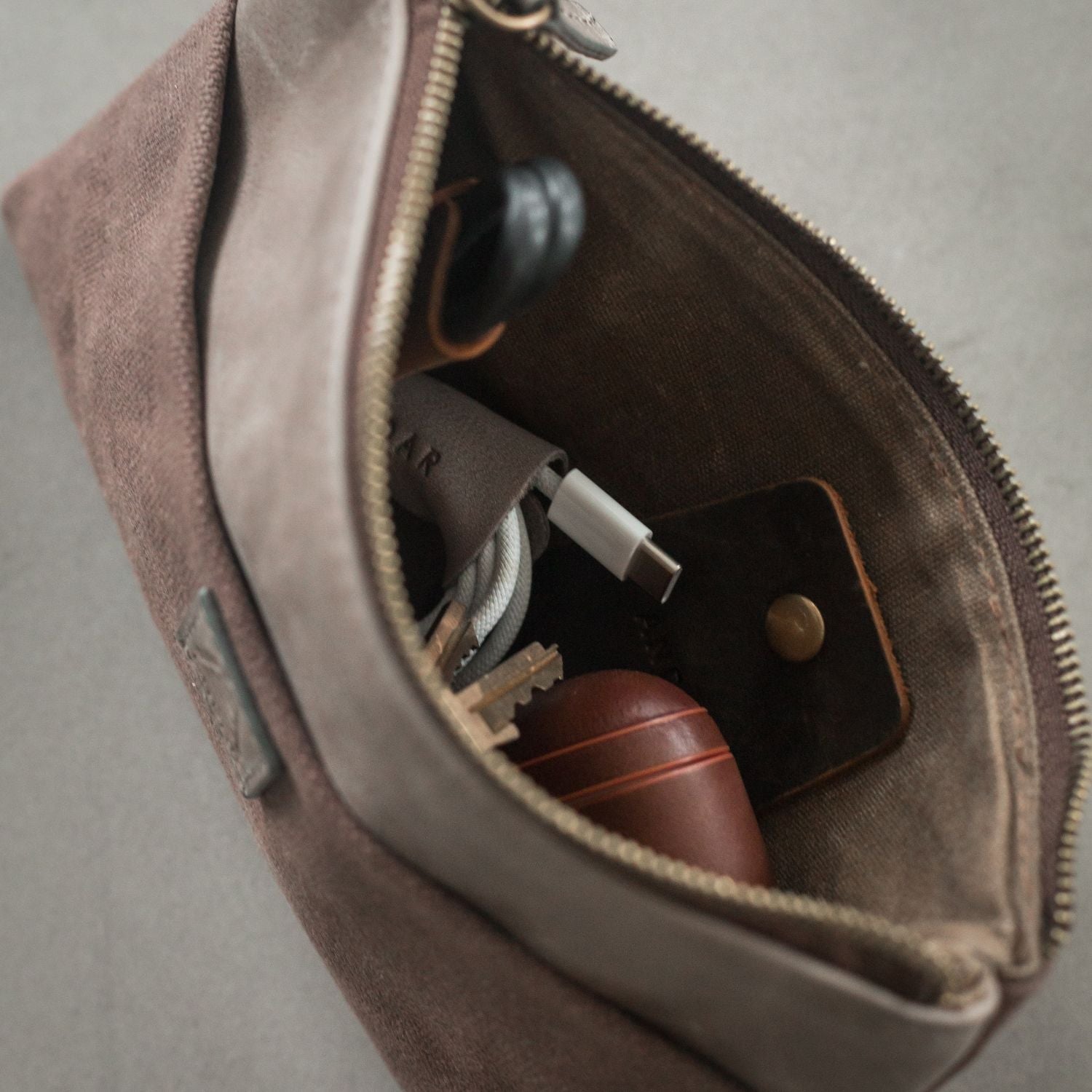 The minimalist pouch, perfected. The Joey is made from oil-waxed canvas and features full-grain leather accents, an anniversary logo patch and magnetic pocket flap in front. Designed to help you organize your bags, or simply to keep on you to carry small items.