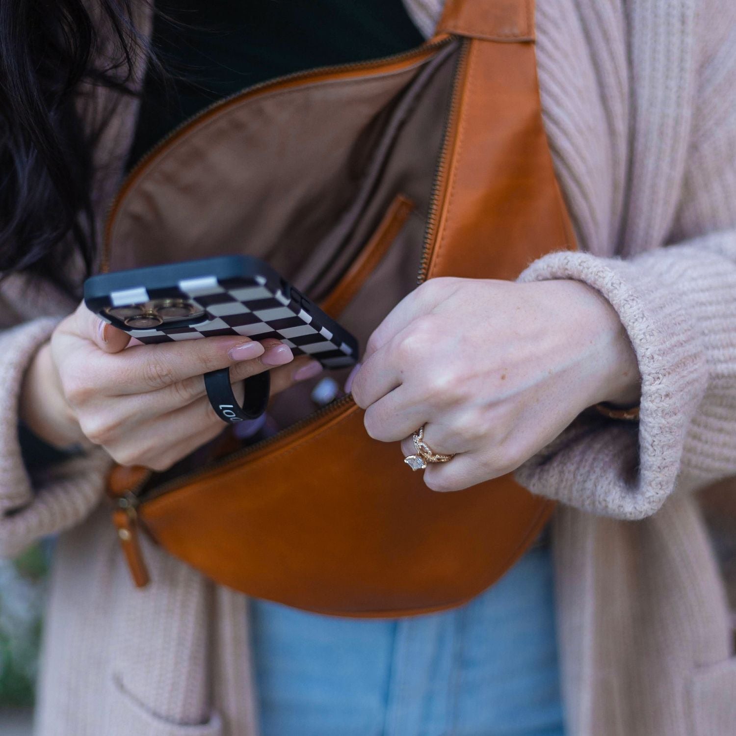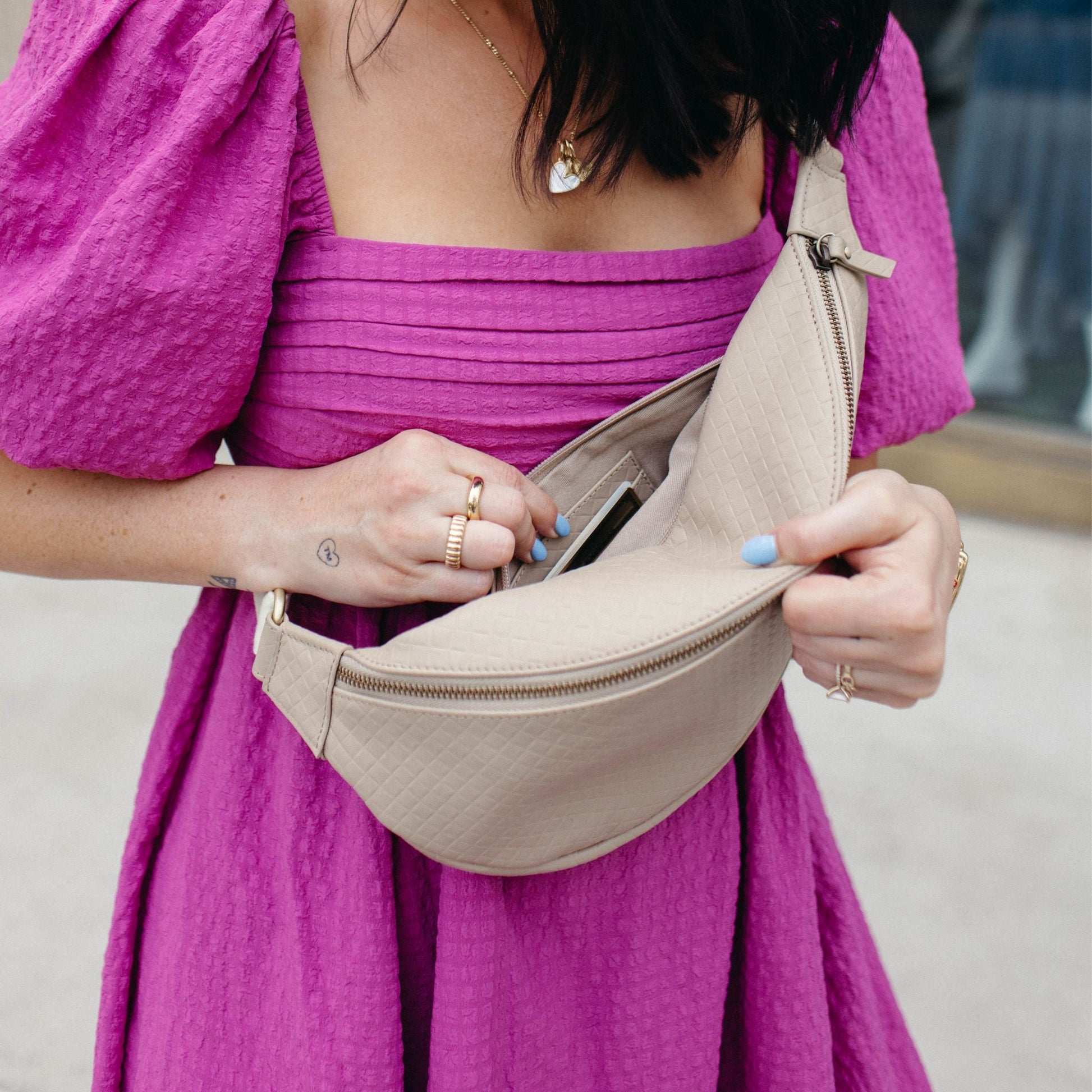 We’ve teamed up with Tia Booth Mock to create the Tatum Bum Bag. Tia designed this bag to fit her needs as a busy mom and full-time creator. The Tatum is large enough to fit all of the essentials for mom life and small enough to be used for everyday carry. Made of full grain leather, has a zippered back pocket with a built in wallet and the strap is removable, for easy cleaning or to mix and match with our other available straps.
