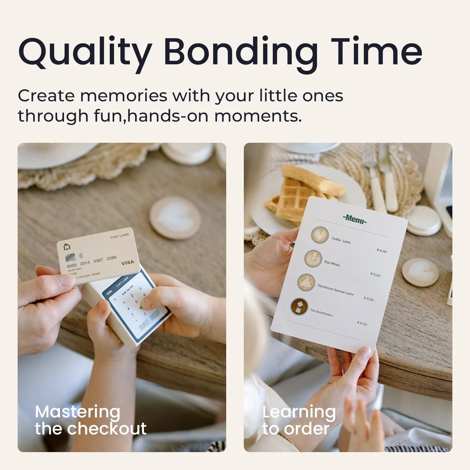 Complete with a full suite of accessories, from to-go cups to a working POS machine, this set transforms simple role-play into storytelling magic. Whether welcoming customers, crafting the perfect latte, or choosing their favorite latte art, little ones build confidence, communication skills, and a love of imaginative exploration.