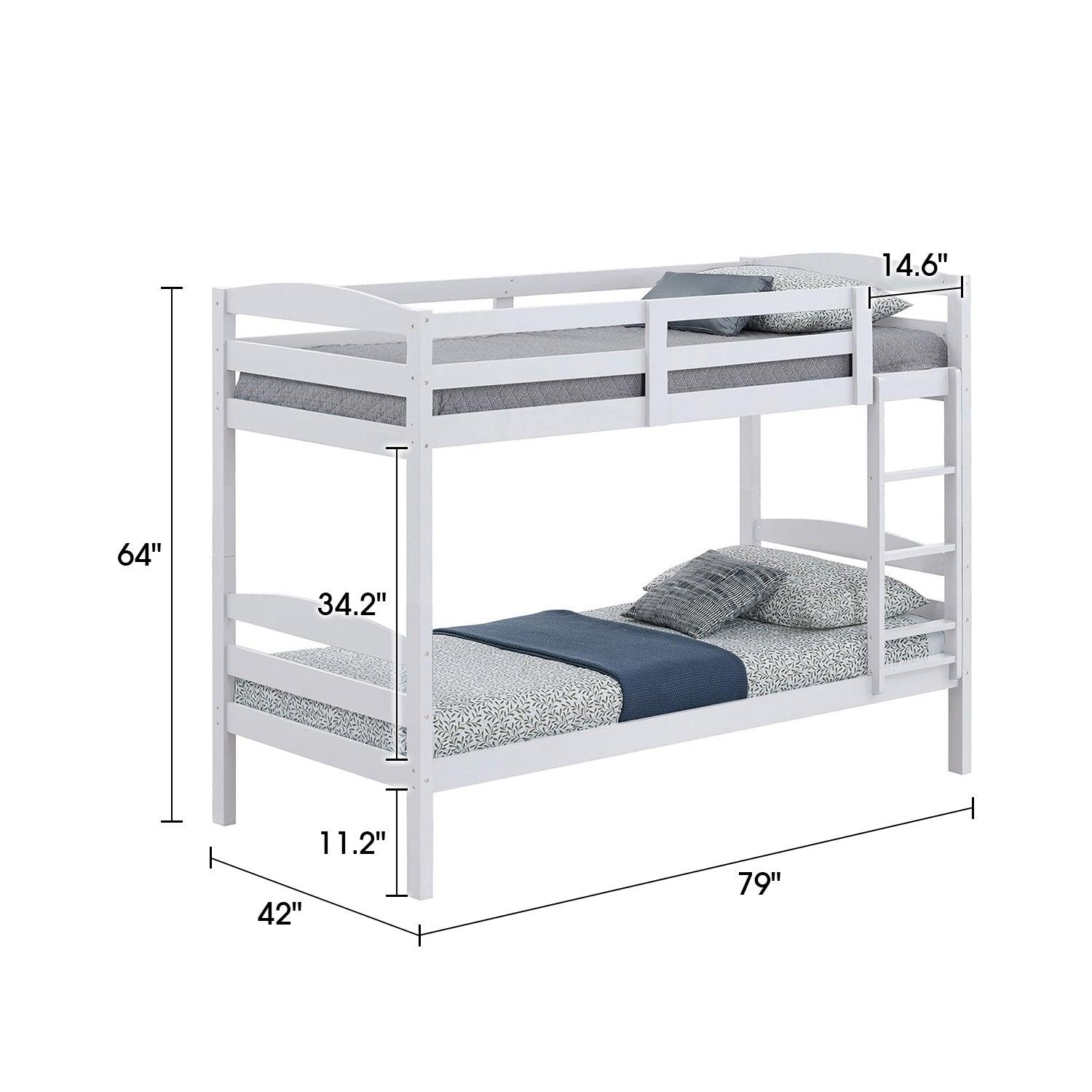 Transitional Solid Hardwood Twin over Twin Bunk Bed, Patented Insert & Lock Joint for Extra Safety for Kids