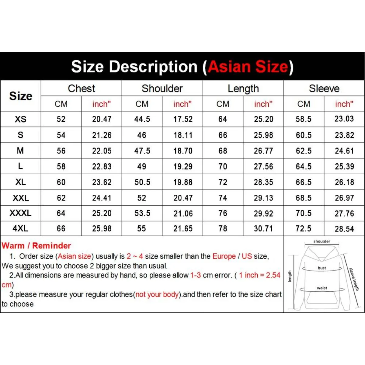 UNISEX SENPAI HOODIES SIZING AND PACKAGING INFO: