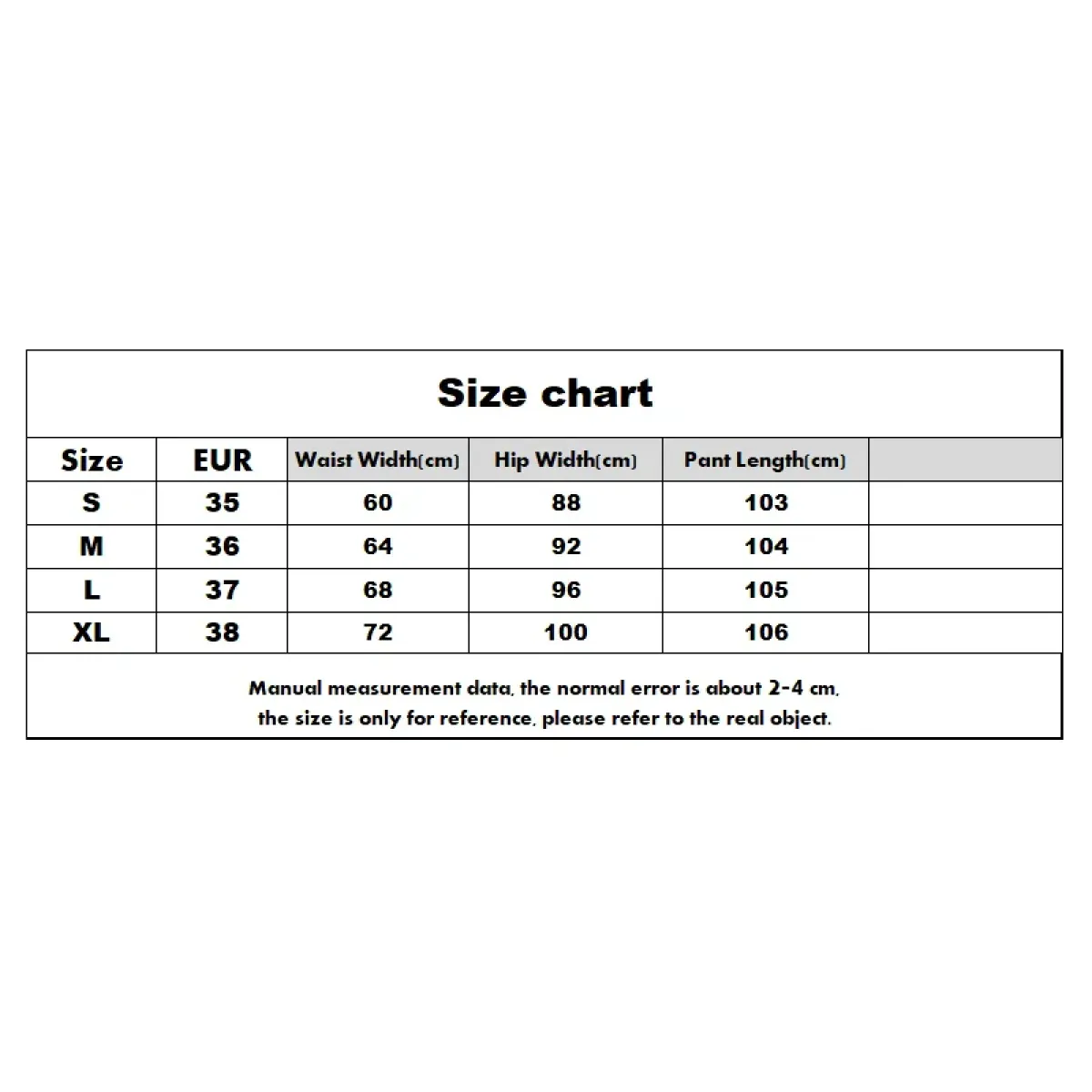 | Size | EUR | Waist Width (cm) | Hip Width (cm) | Pant Length (cm) |